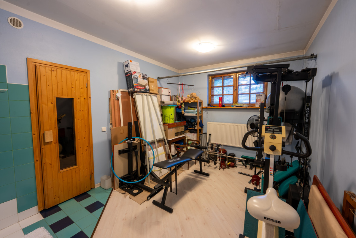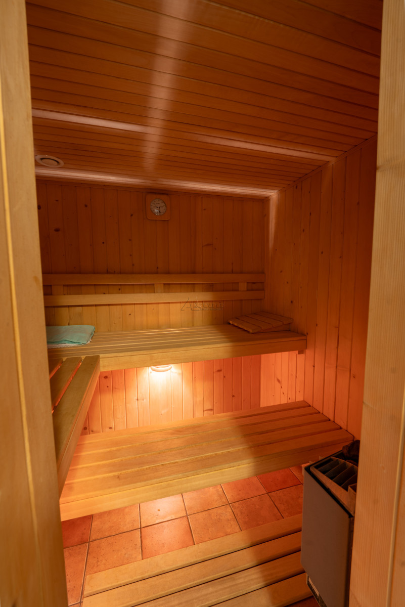 - pokój rekreacyjny o pow. 13.79 m2 z sauną, pow. 3,15 m2 (z piecem elektrycznym) i kabiną prysznicową