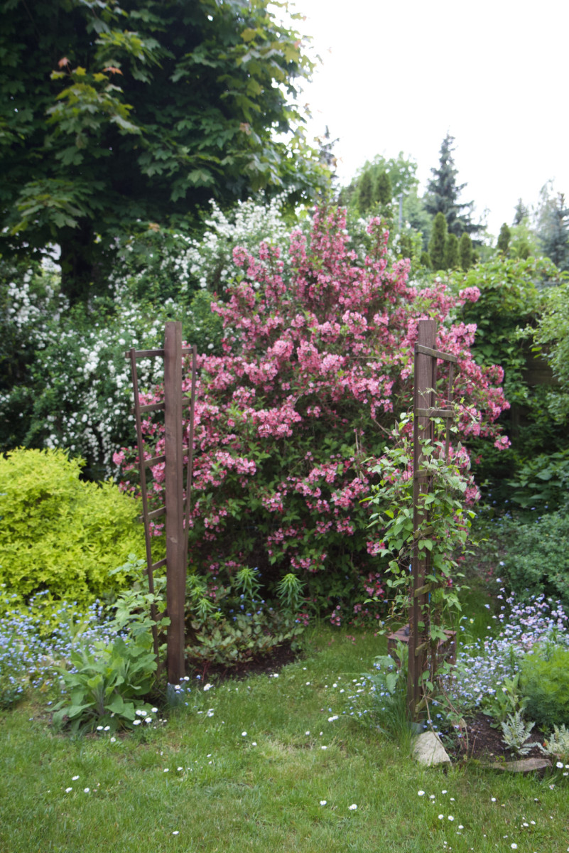 W ogrodzie znajduje się mała architektura ogrodowa - mur ozdobny zbudowany z klinkieru, z podestem pokrytym piaskowcem. Jest to przyjemne miejsce odpoczynku w ogrodzie.